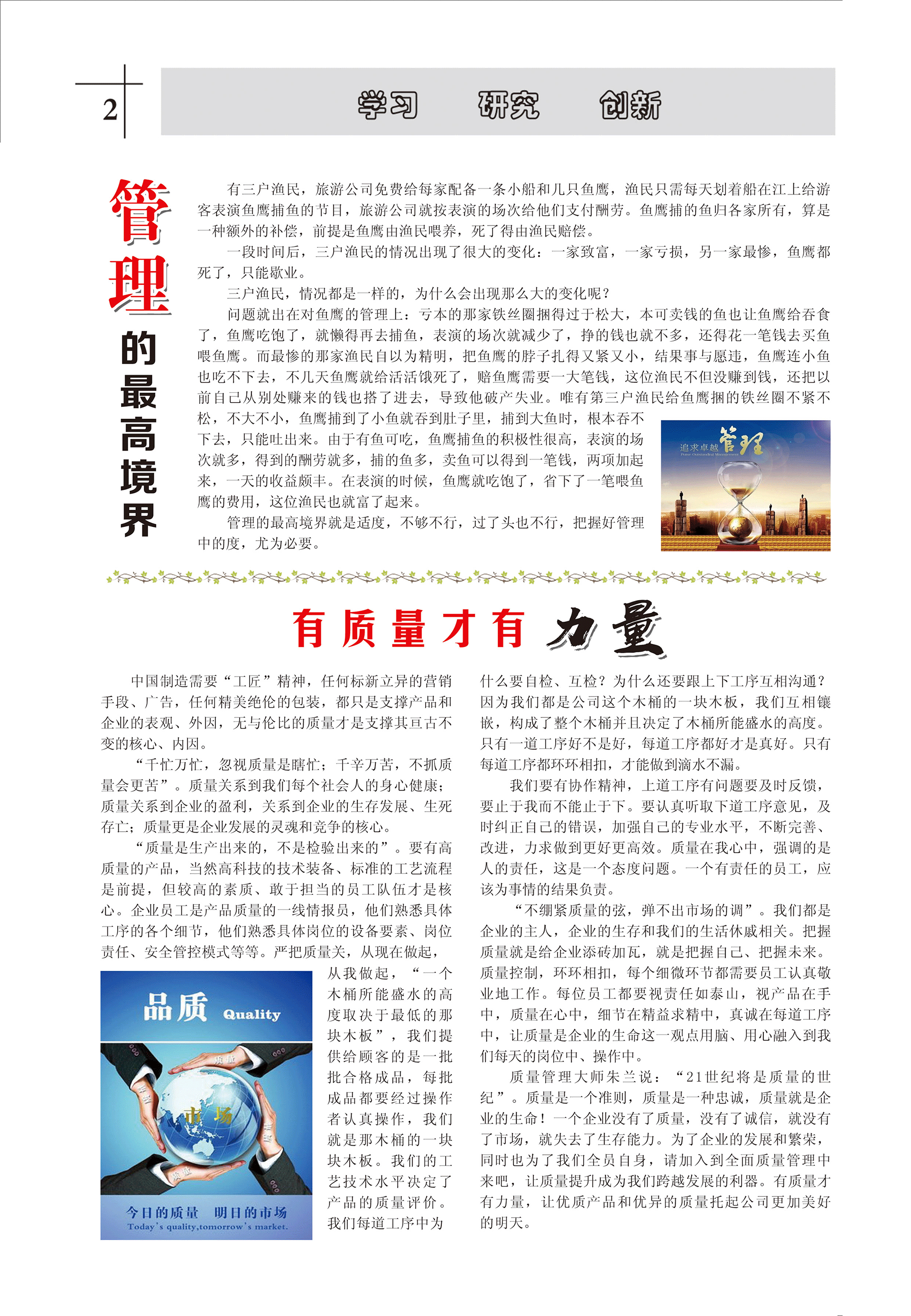 中國制造需要“工匠”精神,任何標(biāo)新立異的營銷手段、廣告,任何精美絕倫的包裝,都只是支撐產(chǎn)品和企業(yè)的表觀、外因,無與倫比的質(zhì)量才是支撐其亙古不變的核心、內(nèi)因。