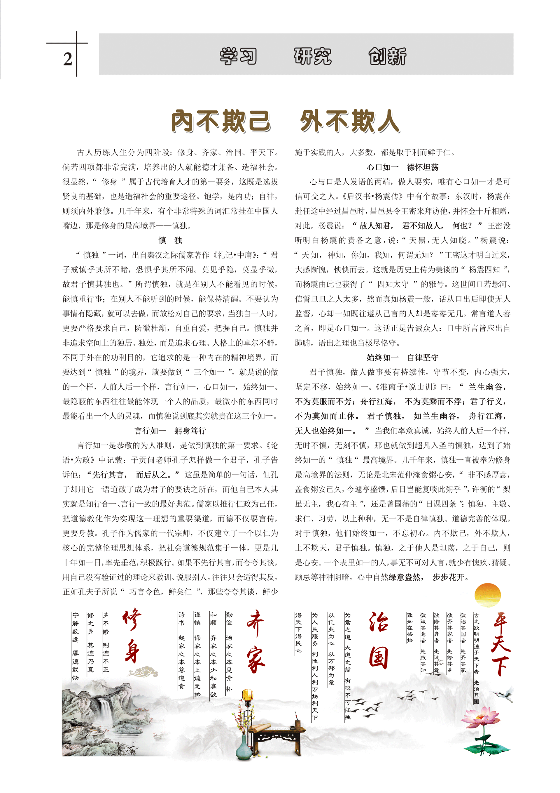 君子慎獨(dú),做人做事要有持續(xù)性,守節(jié)不變,內(nèi)心強(qiáng)大,堅(jiān)定不移,始終如一