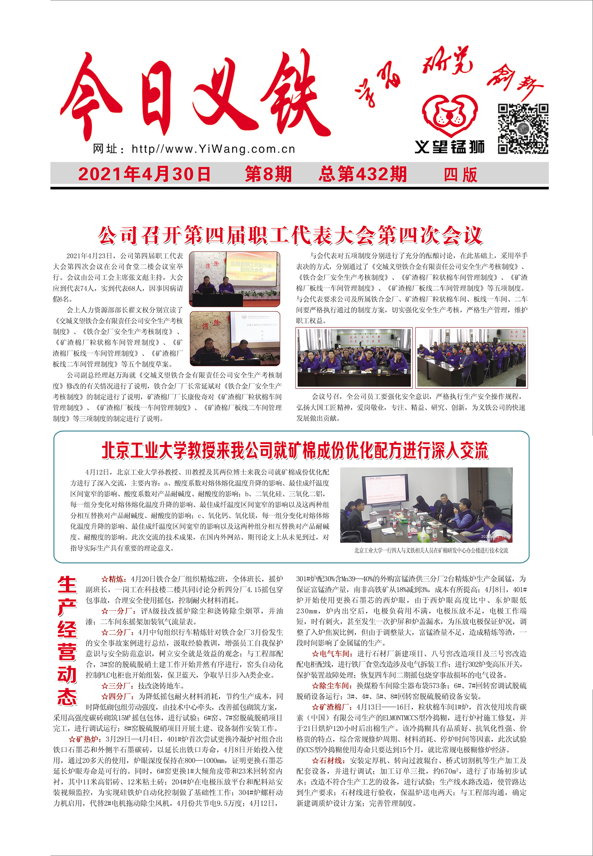 ☆精煉:4月20日鐵合金廠組織精煉2班,全體班長,搖爐副班長,一崗工在科技樓二樓共同討論分析四分廠4.15搖包穿包事故,合理安全使用搖包,控制耐火材料消耗。