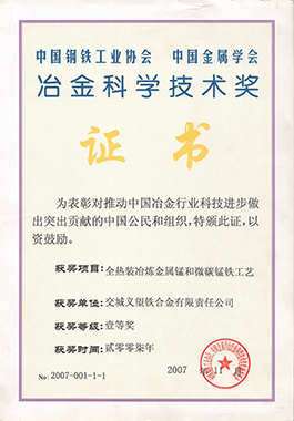 公司以學(xué)習(xí)、研究、創(chuàng)新為企業(yè)發(fā)展理念,不斷追求技術(shù)進(jìn)步,擁有專(zhuān)利49項(xiàng),公司核心技術(shù)“全熱裝冶煉金屬錳及微碳錳鐵新工藝”獲冶金科學(xué)技術(shù)獎(jiǎng)一等獎(jiǎng),礦棉核心工藝“液態(tài)廢渣制取礦棉新工藝”獲冶金科學(xué)技術(shù)獎(jiǎng)二等獎(jiǎng)。2012年公司通過(guò)山西省高新技術(shù)企業(yè)認(rèn)定,《富錳渣電爐冶煉工藝》等三個(gè)創(chuàng)新項(xiàng)目獲山西省科學(xué)技術(shù)獎(jiǎng);公司始終關(guān)注行業(yè)技術(shù)進(jìn)步,積極參與行業(yè)標(biāo)準(zhǔn)的制修訂,多年來(lái)參與了《金屬錳》、《微碳錳鐵》、《錳氮合金》等多個(gè)國(guó)家、行業(yè)標(biāo)準(zhǔn)的制修訂工作,公司2013年主持修訂了《錳鐵》國(guó)家標(biāo)準(zhǔn)并獲準(zhǔn)頒布。