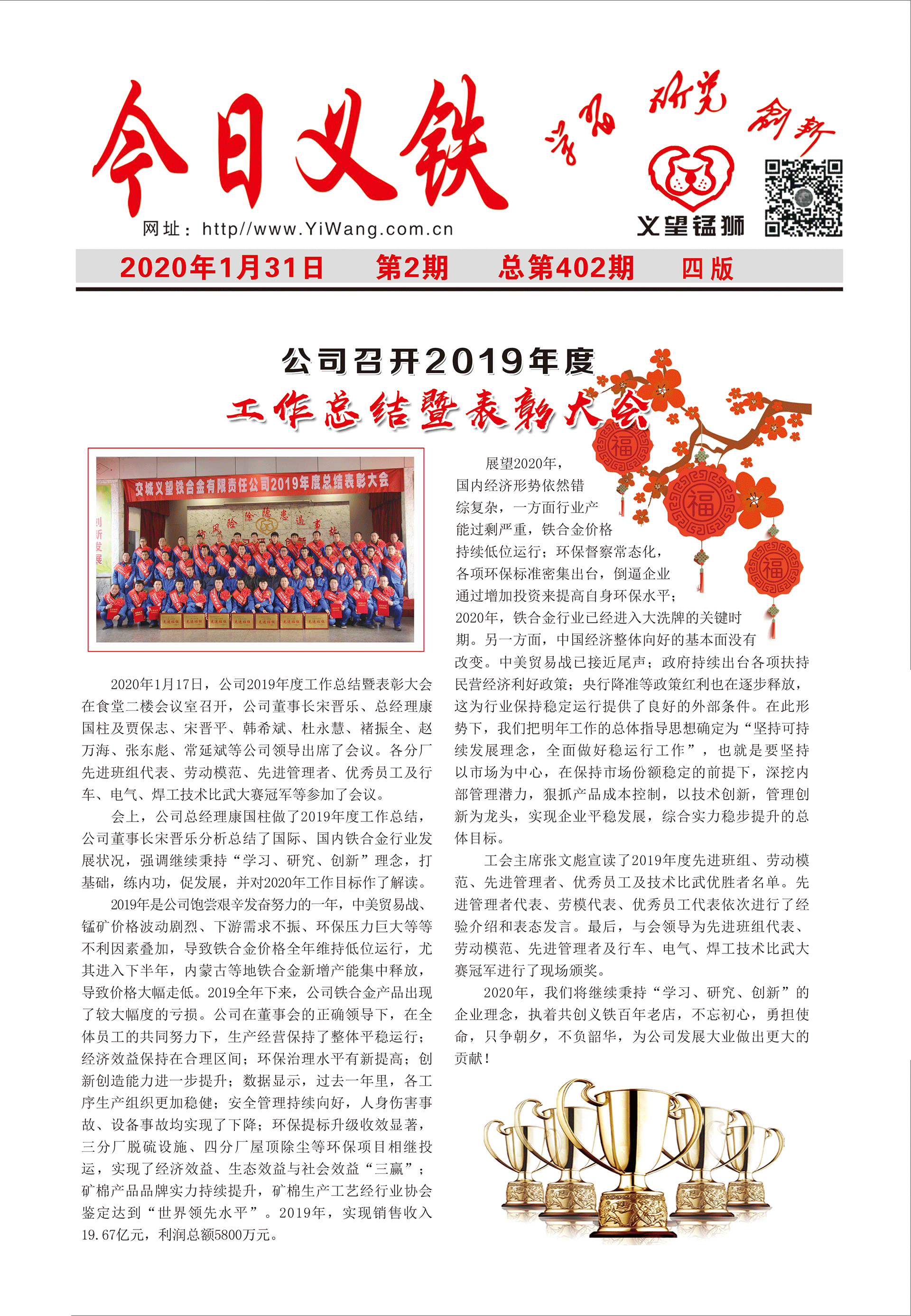 2020年1月17日,公司2019年度工作總結暨表彰大會在食堂二樓會議室召開,公司董事長宋晉樂、總經理康國柱及賈保志、宋晉平、韓希斌、杜永慧、褚振全、趙萬海、張東彪、常延斌等公司領導出席了會議。各分廠先進班組代表、勞動模范、先進管理者、優(yōu)秀員工及行車、電氣、焊工技術比武大賽冠軍等參加了會議。