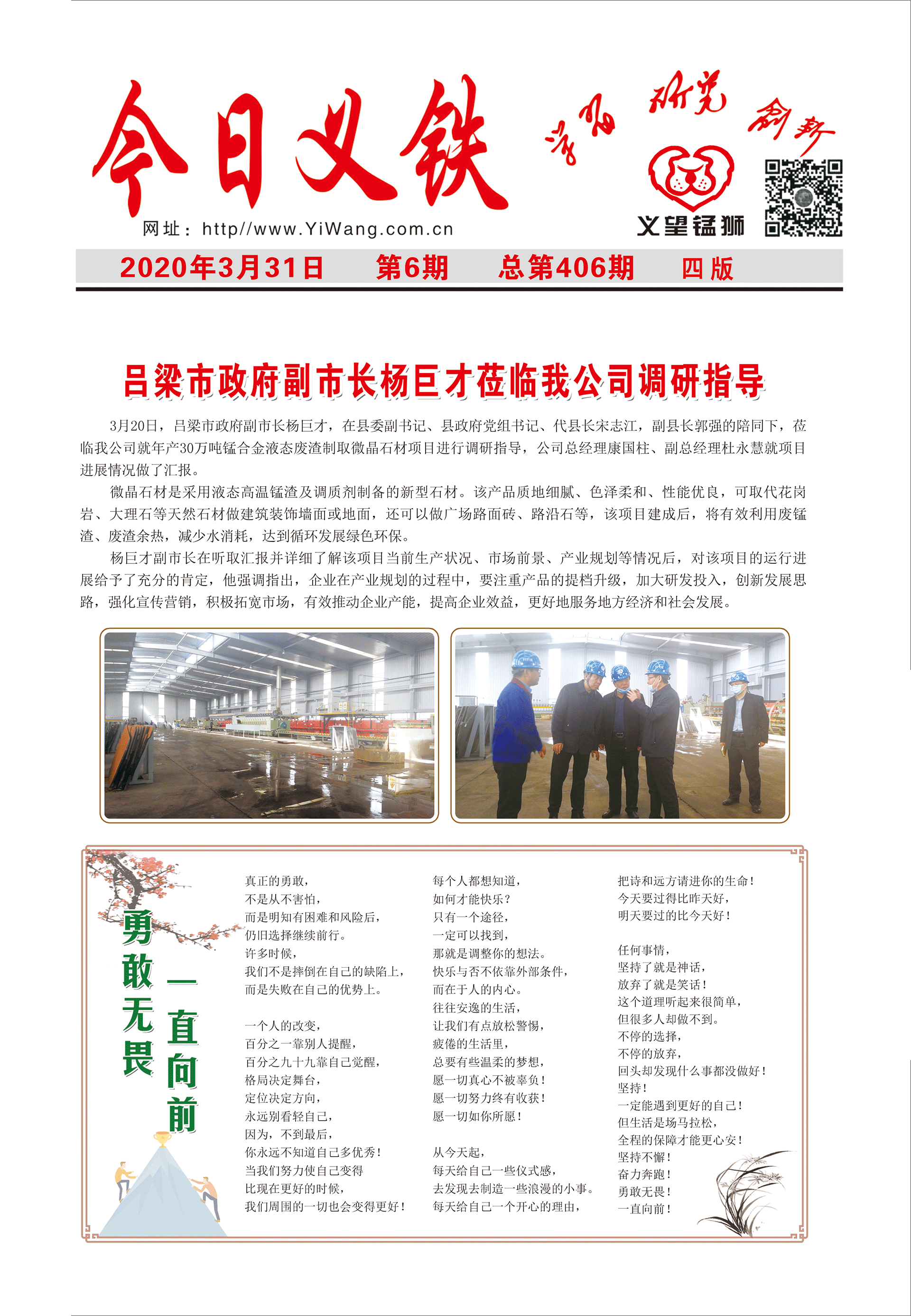 3月20日,呂梁市政府副市長楊巨才,在縣委副書記、縣政府黨組書記、代縣長宋志江,副縣長郭強的陪同下,蒞臨我公司就年產30萬噸錳合金液態(tài)廢渣制取微晶石材項目進行調研指導,公司總經理康國柱、副總經理杜永慧就項目進展情況做了匯報。