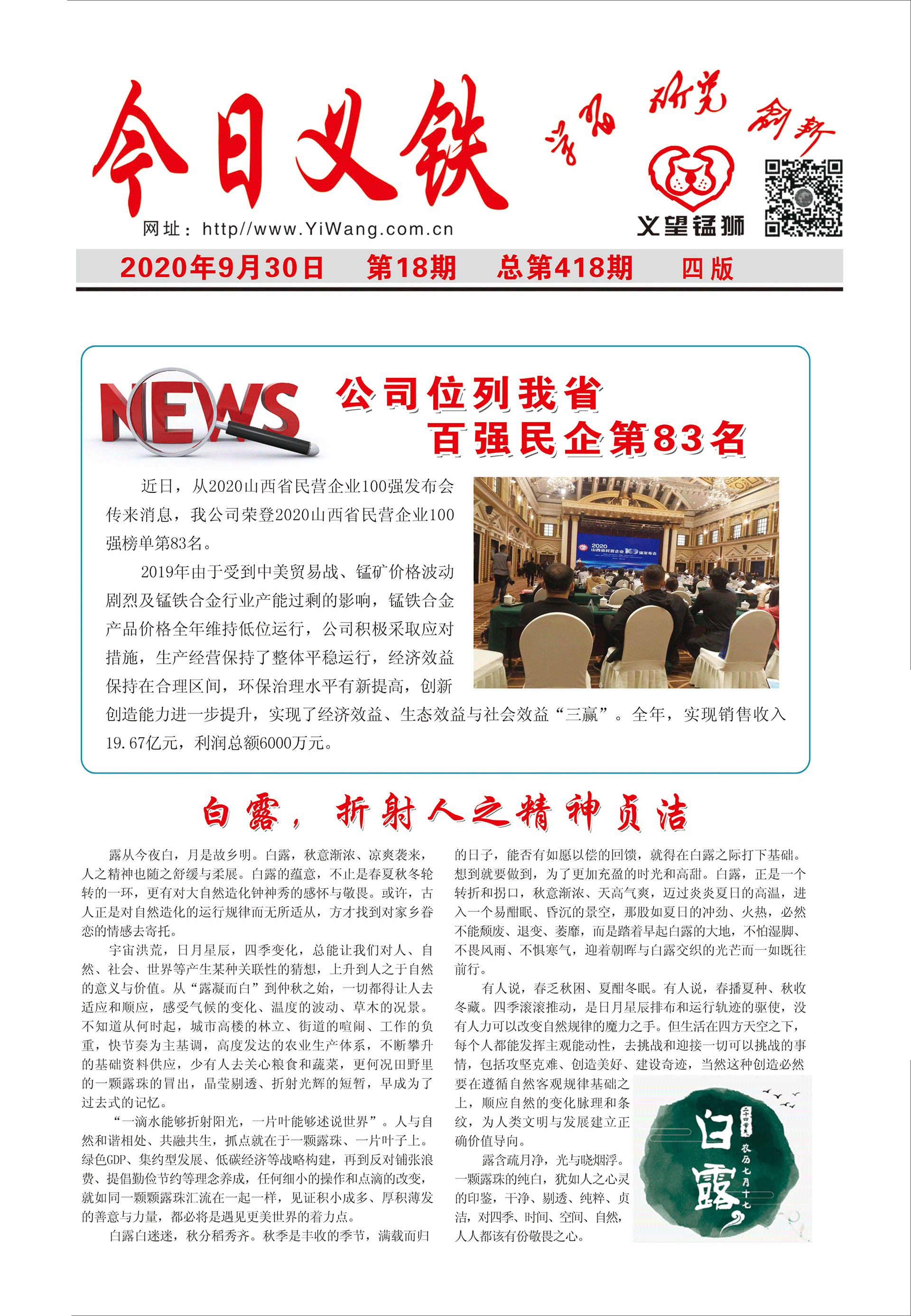 近日,從2020山西省民營企業(yè)100強發(fā)布會傳來消息,我公司榮登2020山西省民營企業(yè)100強榜單第83名。