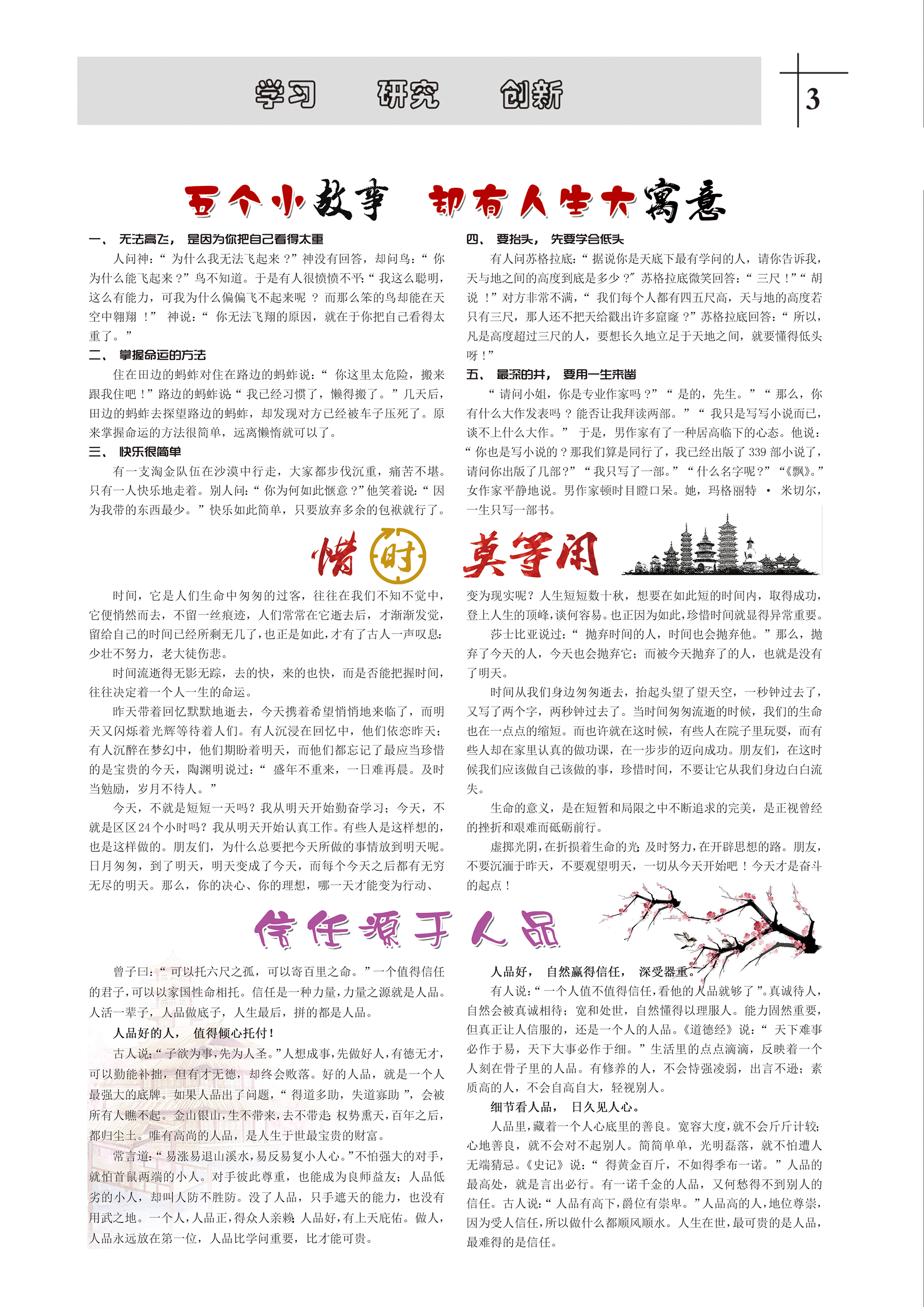 曾子曰:“可以托六尺之孤,可以寄百里之命?!币粋€(gè)值得信任的君子,可以以家國性命相托。信任是一種力量,力量之源就是人品。人活一輩子,人品做底子,人生最后,拼的都是人品。
