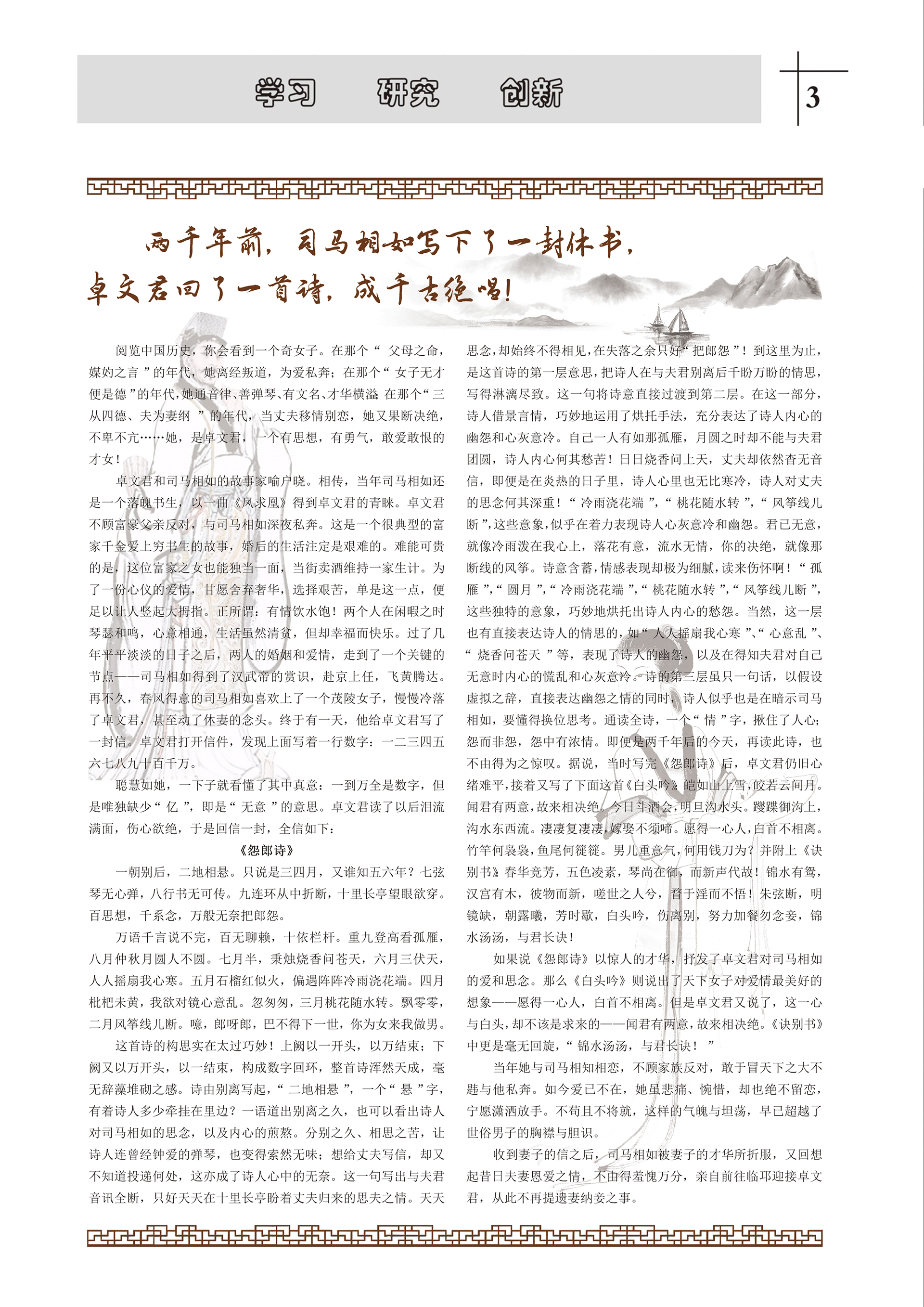 閱覽中國歷史,你會(huì)看到一個(gè)奇女子。在那個(gè)“父母之命,媒妁之言”的年代,她離經(jīng)叛道,為愛私奔;在那個(gè)“女子無才便是德”的年代,她通音律、善彈琴、有文名、才華橫溢