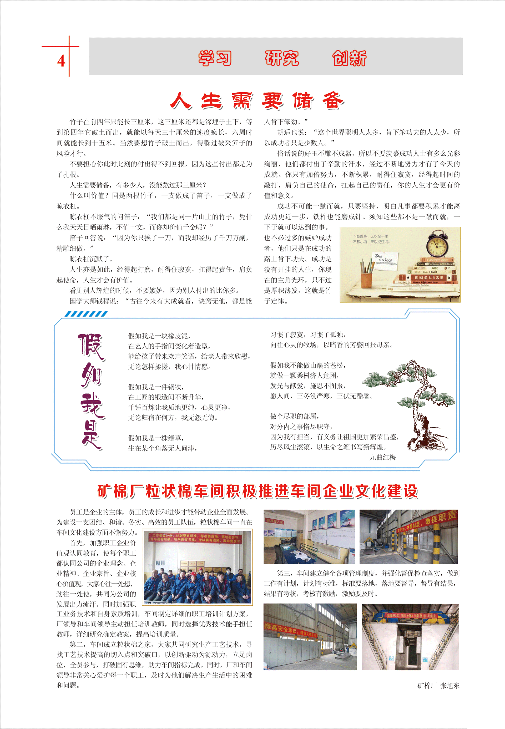 員工是企業(yè)的主體,員工的成長和進(jìn)步才能帶動企業(yè)全面發(fā)展。為建設(shè)一支團(tuán)結(jié)、和諧、務(wù)實、高效的員工隊伍,粒狀棉車間一直在車間文化建設(shè)方面不懈努力。
