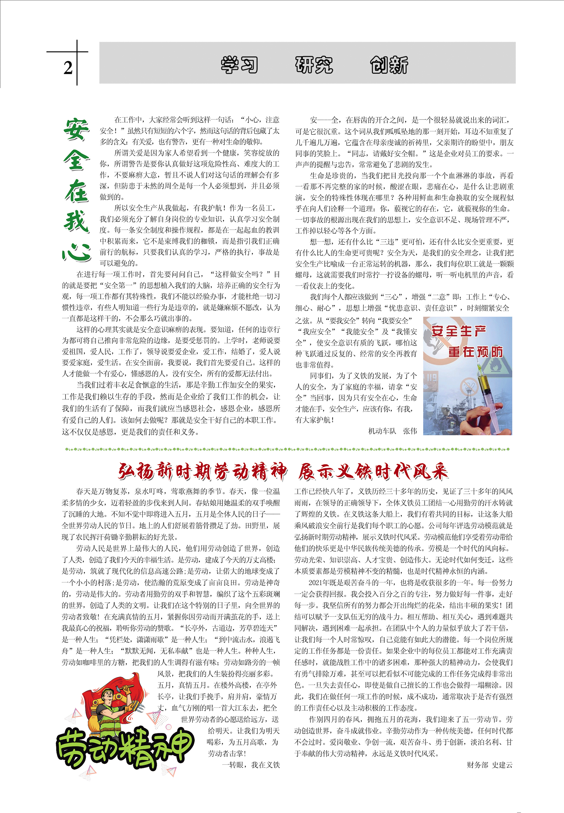 整潔、優(yōu)美的廠區(qū),不僅是展示員工高素質(zhì)水平的一個(gè)窗口,也是我們生活、工作的理想所在。作為一名員工,作為義鐵的一份子,有責(zé)任也有義務(wù)保持她的潔凈,美化她的環(huán)境。在義鐵就如同我們自己的家園一樣,應(yīng)當(dāng)盡到呵護(hù)她的責(zé)任。